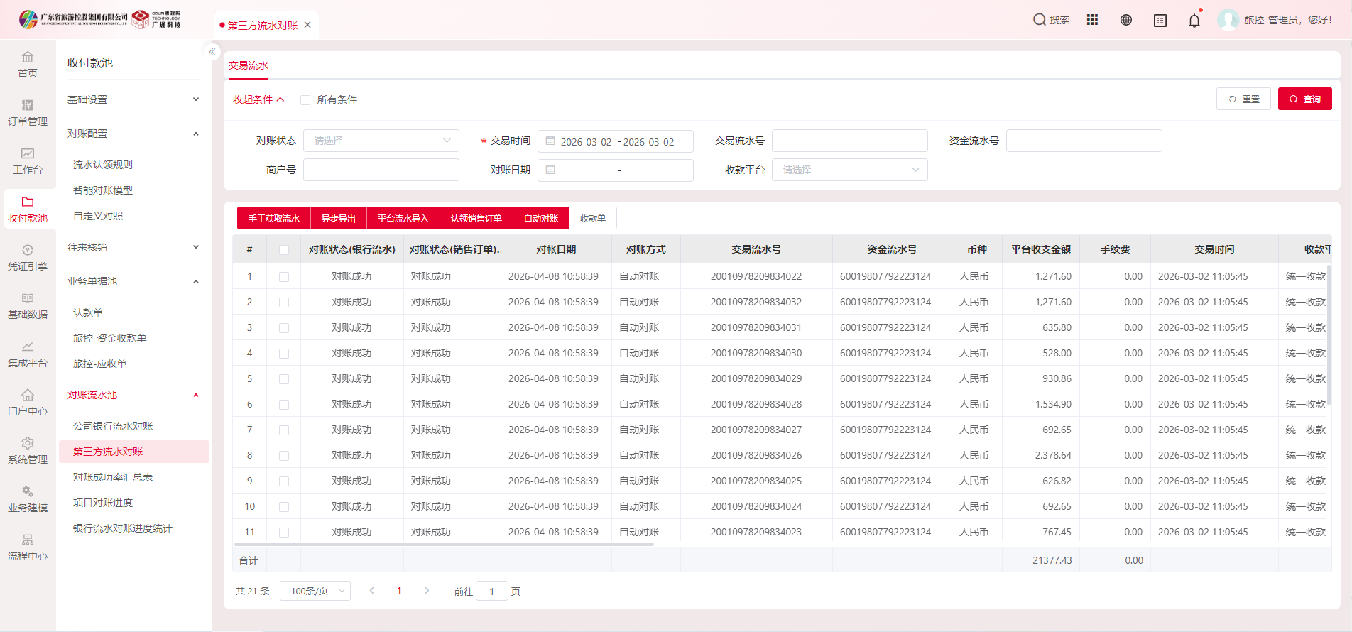 会议强调,当前项目已进入白云宾馆试点上线关键阶段,要在确保质量基础上加快推进实施,尽快完善上线方案和详细计划,压实责任分工,确保试点顺利落地。下一步,项目组将围绕试点上线,持续优化自动对账功能,推进主数据管理细则试行,为后续全集团推广奠定坚实基础。